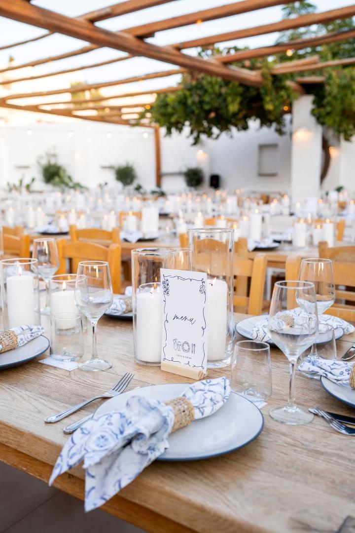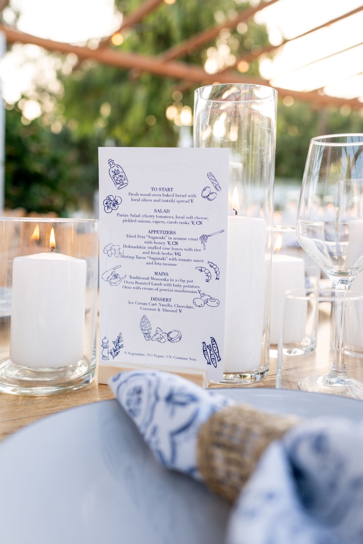 In September, we orchestrated an enchanting pre-wedding dinner on the stunning island of Paros, Greece, tailored for couples seeking a luxurious experience. Nestled in the charming village of Naoussa, our whimsical theme came to life amidst the soft glow of candlelight, setting the perfect atmosphere for this unforgettable evening.